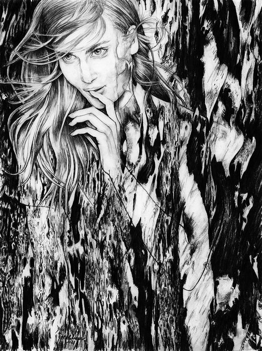 Lunar Fancy - Al de la' (Beyond), 2022, graphite pencil on paper, 20 x 16 in. / 50.8 x 40.64 cm.