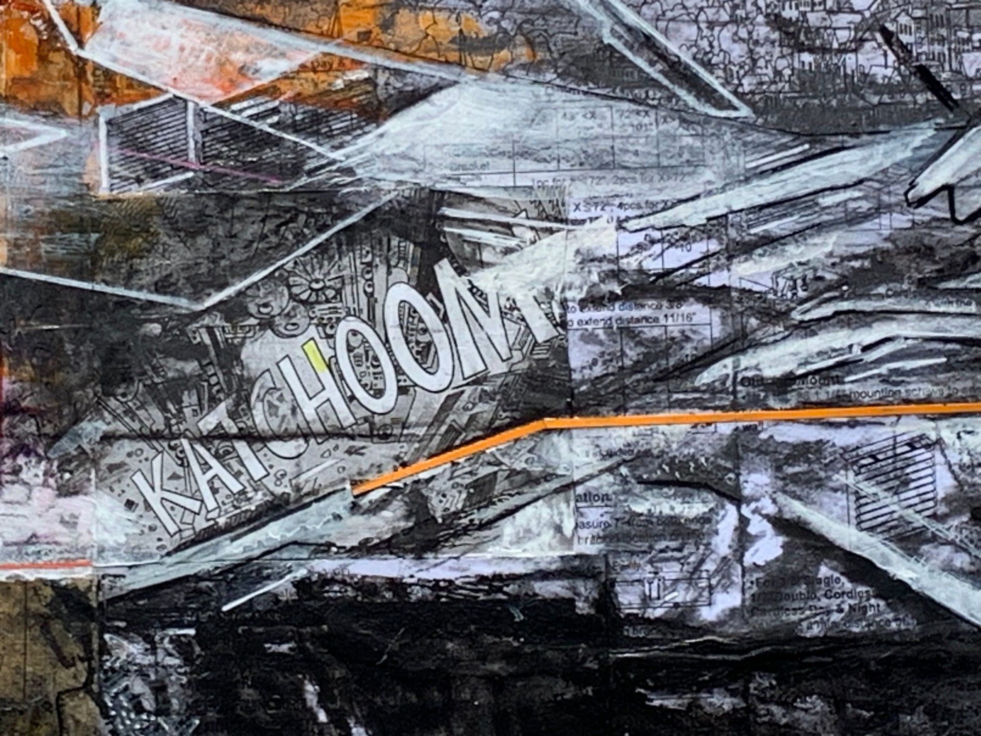 Media Fusion on canvas: collage, acrylic, graphite, marker