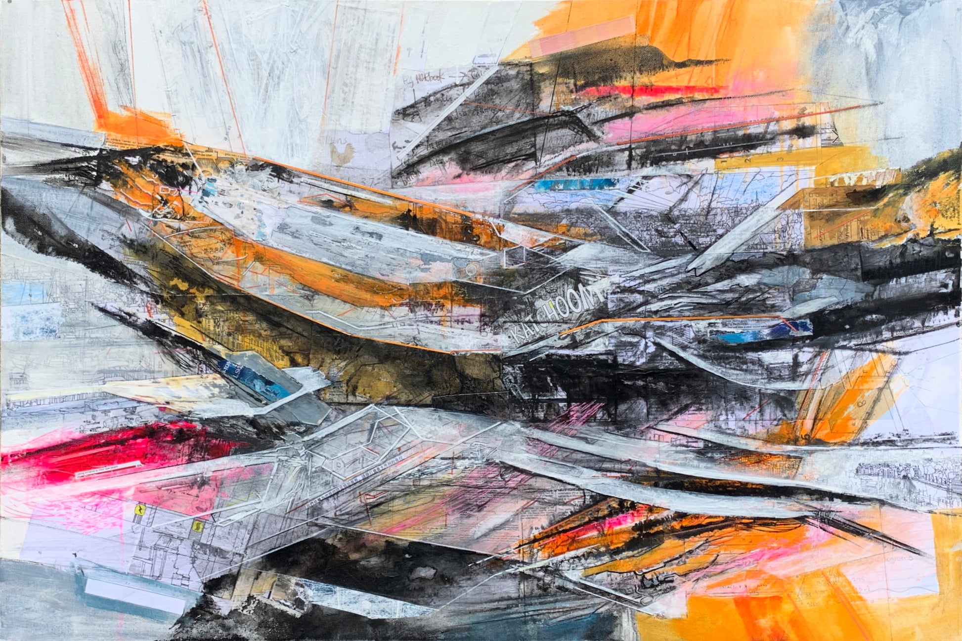 Maximum Flux, 2024, mixed media, 24 x 36 in. / 60.96 x 91.44 cm.