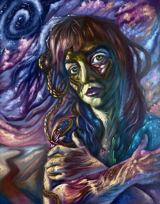 Medusa Dreams: The Snakes Inside, Chloe Allred, 2025, oil on canvas, 24 x 18 in. / 60.96 x 45.72 cm.