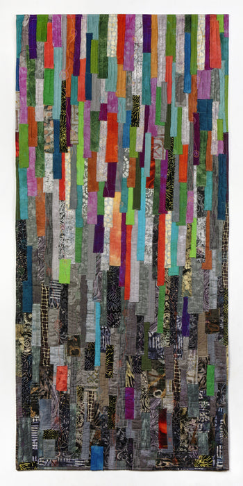 As we journey through life, we're enriched by experiences that over time become memories. At first, they are colorful and well-defined, but as we move towards our destination, they become blurred, often indistinguishable. Machine-stitched hand-dyed and commercial cotton fabric