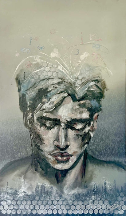 Mindchatter, 2024, oil on canvas, 25 x 15 in. / 63.5 x 38.1 cm.