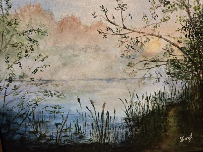 Misty Morning, Sheryl Rupprecht, 2024, acrylic, 16 x 20 in. / 40.64 x 50.8 cm.