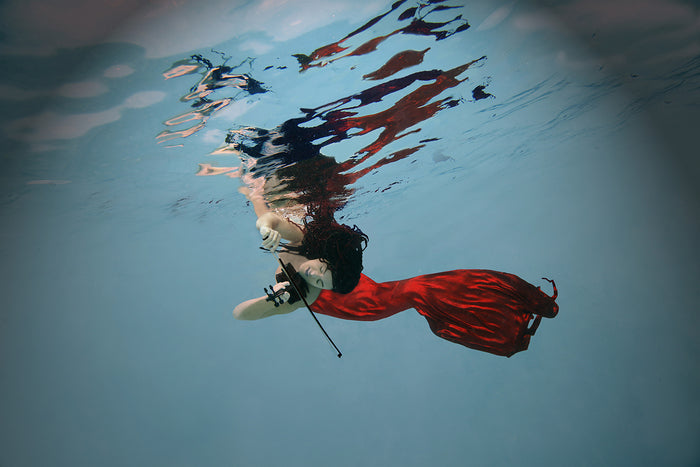 Musical Merman, 2023, underwater fine art photography on canvas, 24 x 36 in. / 60.96 x 91.44 cm.