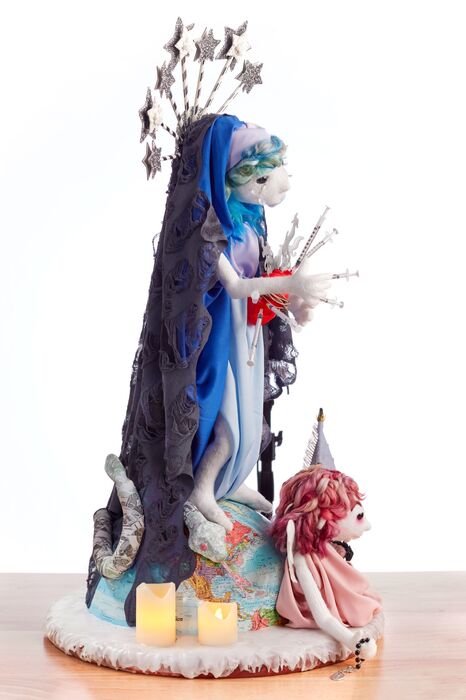 Our Lady, 2020, mixed media soft sculpture, 36 x 18 x 18 in. / 91.44 x 45.72 x 45.72 cm.