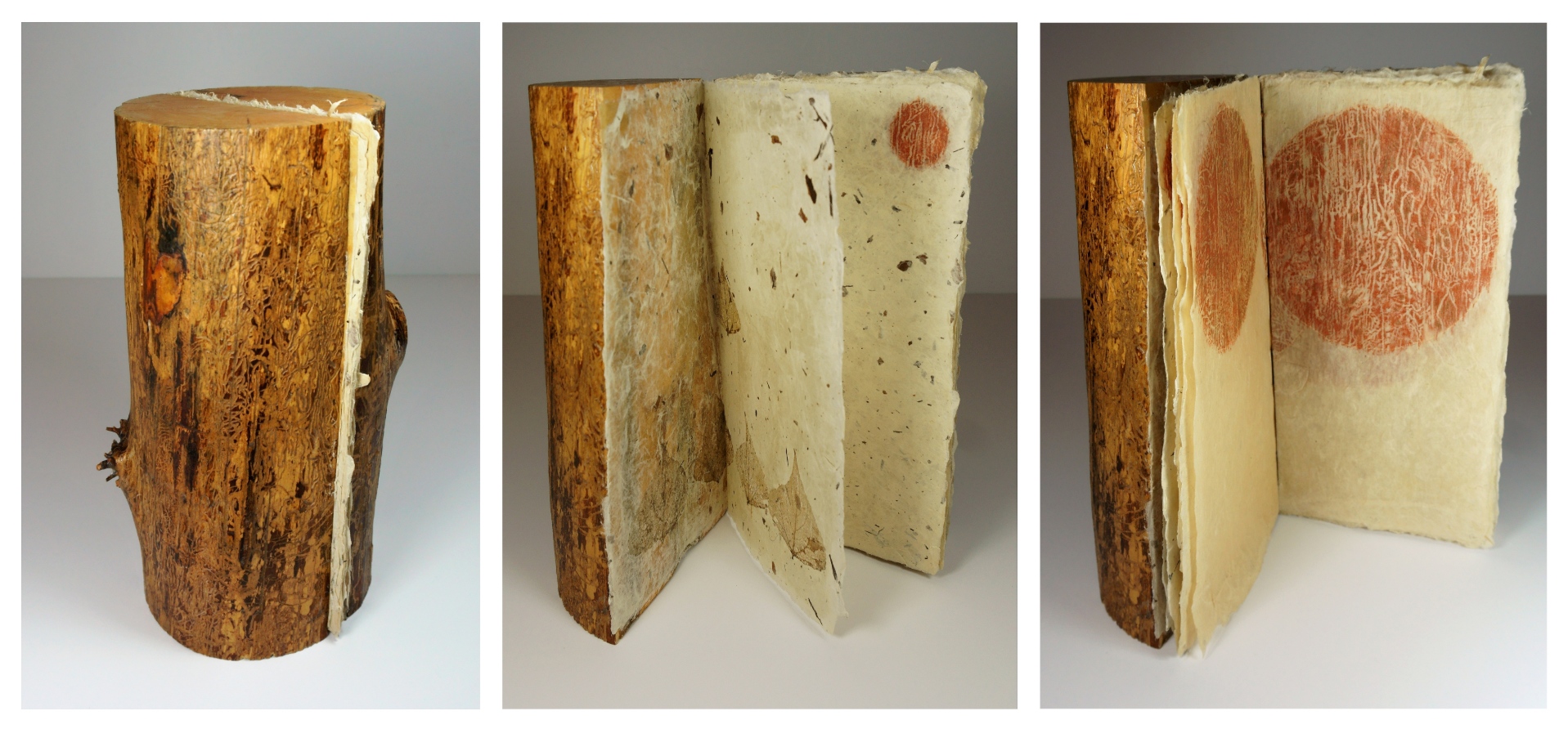 Artist book: Wood, handmade paper, viscose, nylon thread