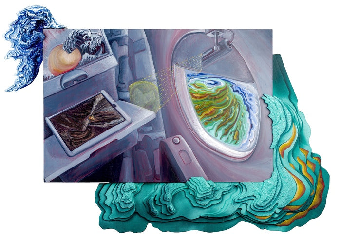 Outside In, Julie Cardillo, 2023, oil on panel with spray painted foam, 28 x 36 in. / 71.12 x 91.44 cm.