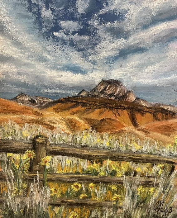 Outside of Thermopolis Wyoming, 2023, soft pastels, 8 x 10 in. / 20.32 x 25.4 cm.