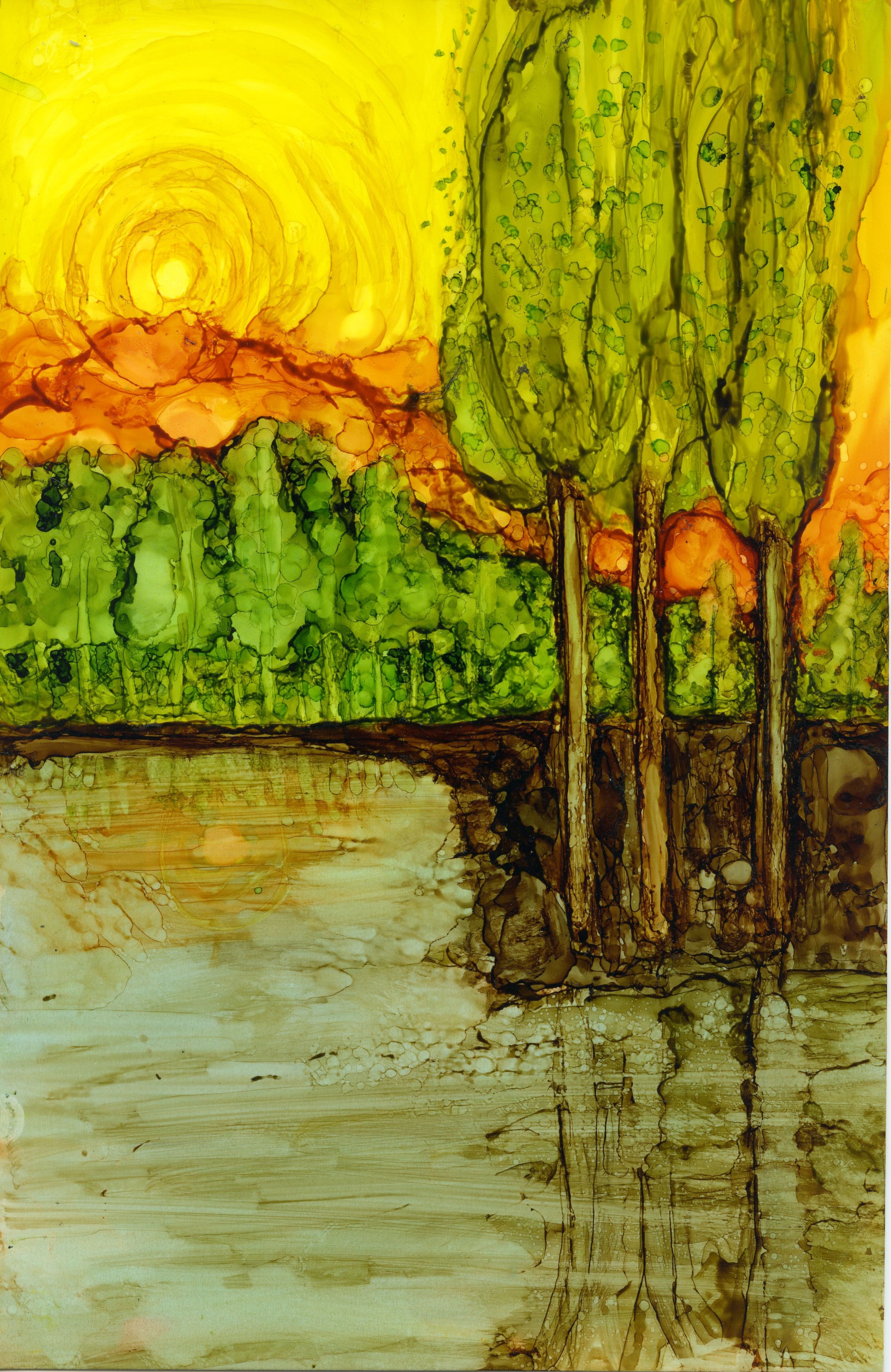 Poplars, 2022, alcohol inks, 8 x 10 in. / 20.32 x 25.4 cm.