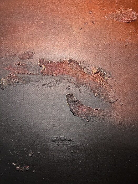 Progressions traces erosion in slow motion—charred sediment, embered ruin, and surface memory. Built from ash tones and mineral grit, it speaks to cycles of loss and emergence. A sparse, tactile meditation on time and renewal.