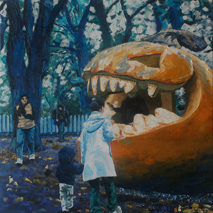 Pumpkin Patch Blues, Jordan Caldwell, 2024, oil on canvas, 18 x 18 in. / 45.72 x 45.72 cm.