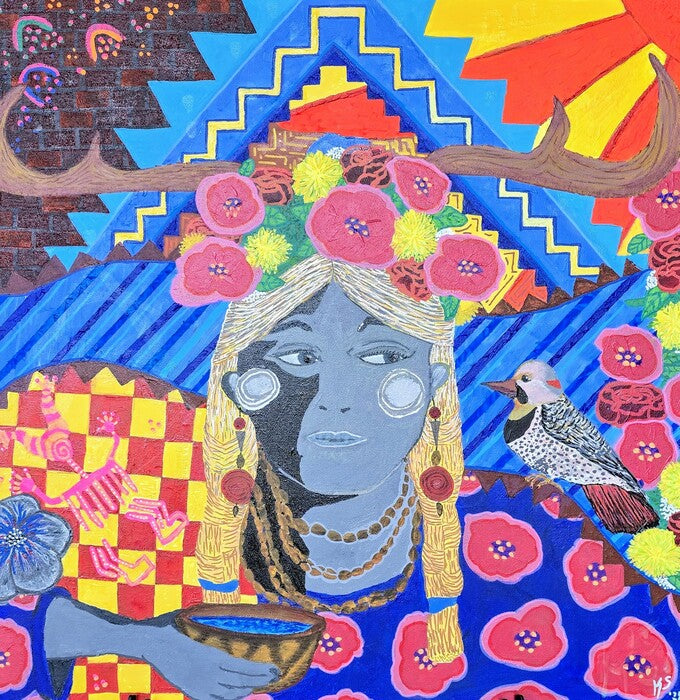 Reflections of Heritage, Kasso, 2025, acrylic on canvas, 24 x 24 in. / 60.96 x 60.96 cm.