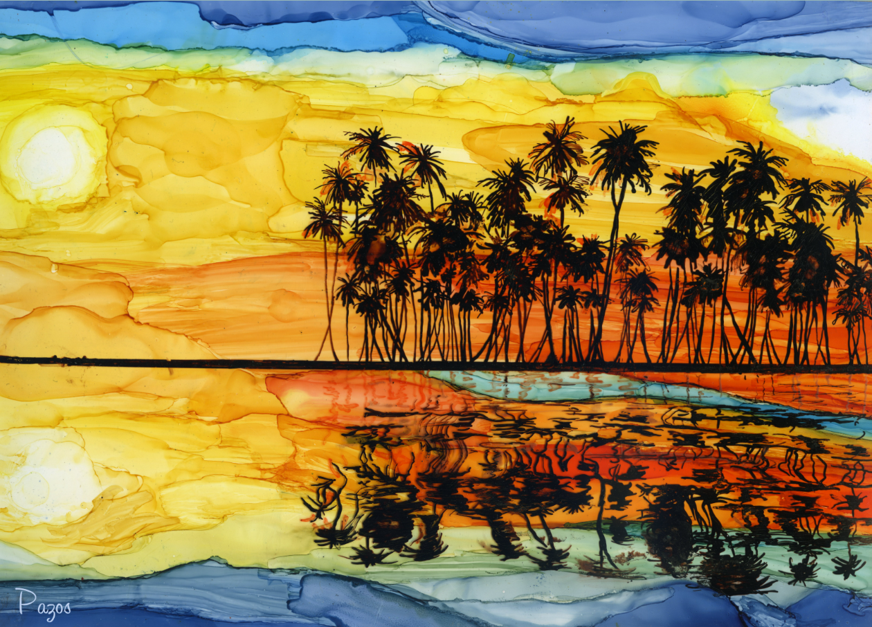 Reflections of Palms, Maria Pazos, 2023, alcohol inks, 14 x 11 in. / 35.56 x 27.94 cm.