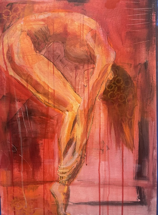 Sad This is Last Series, Valerie Kalmenson, 2025, charcoal acrylic and a ink on canvas, 36 x 24 in. / 91.44 x 60.96 cm.