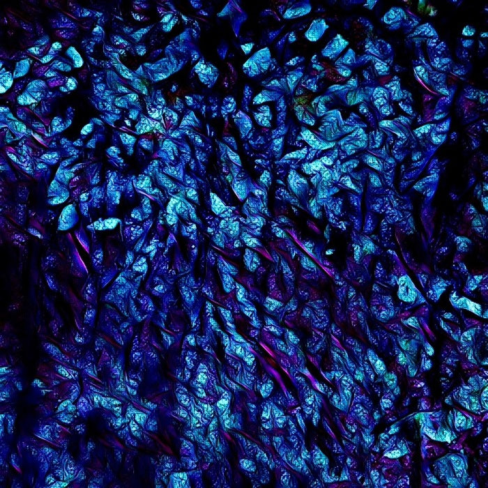 Shadows in Motion: this is an abstract landscape where fractured light, like shards from a hidden crystal, create layers that shift between shadow and illumination. Bands of deep blues and purples fold and refract and manifest as a sharp geometry with a restless energy.