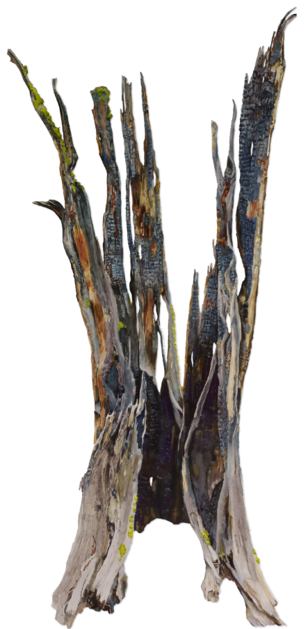 Splintered, Suze Woolf, 2023, varnished watercolor on torn paper, 52 x 25 in. / 132.08 x 63.5 cm.