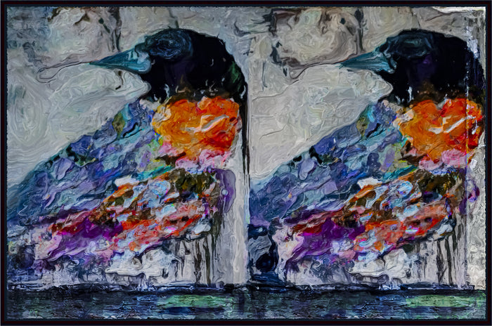 I have always been fascinated by 19th-century stereoscopes, and as I began this piece, I repeated the bird image in a way that reminded me of those early attempts at 3D image making.