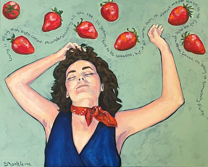 Strawberry Fields, Stacey Monteleone, 2025, acrylics on canvas, 16 x 20 in. / 40.64 x 50.8 cm.