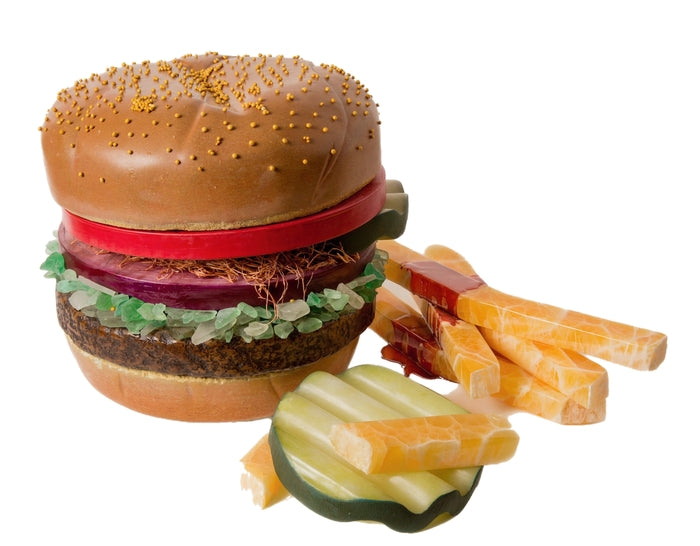 Summer Barbecue, 2016, limestone, marble, and mixed media, 15 x 26 x 22 in. / 38.1 x 66.04 x 55.88 cm.