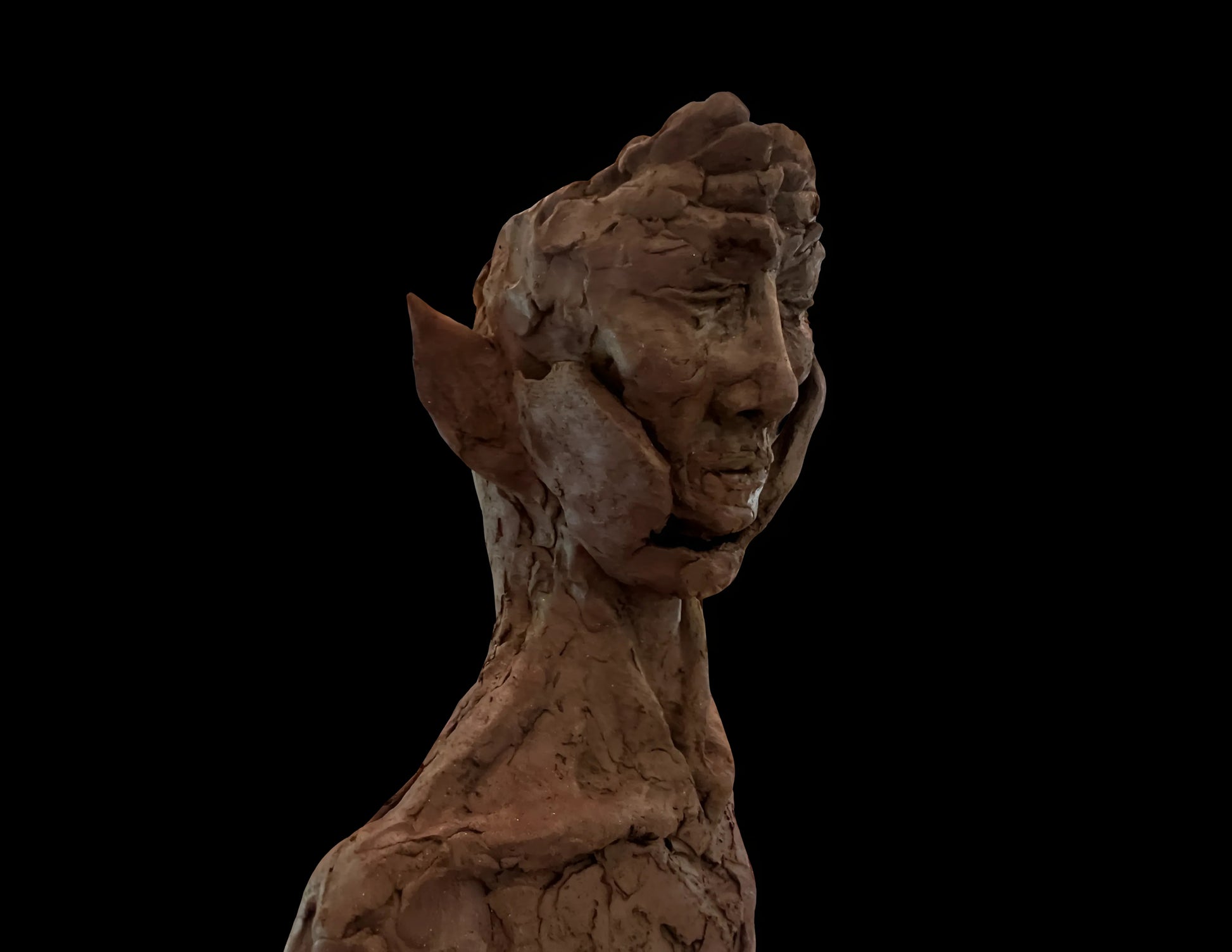 The Birthing, 2024, fired clay, 26 x 14 x 8 in. / 66.04 x 35.56 x 20.32 cm.