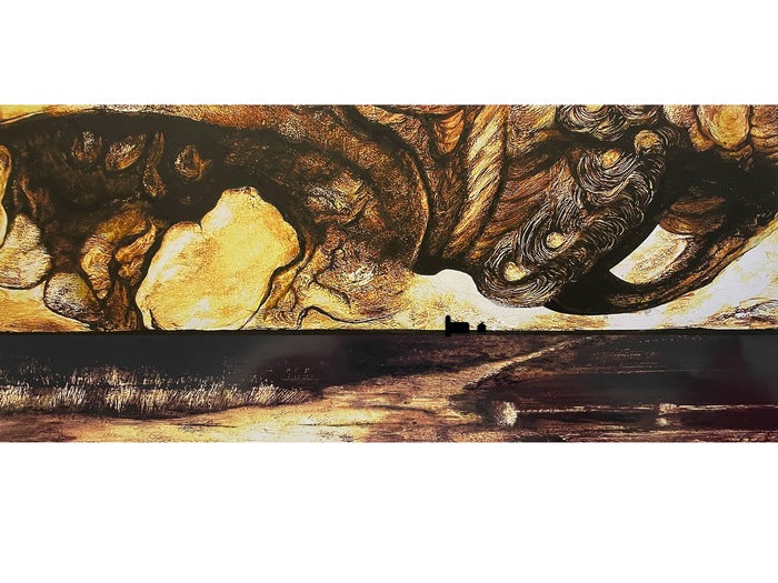The Gods Were Angry, Martin Schumacher, 2024, mixed media, 8 x 18 in. / 20.32 x 45.72 cm.