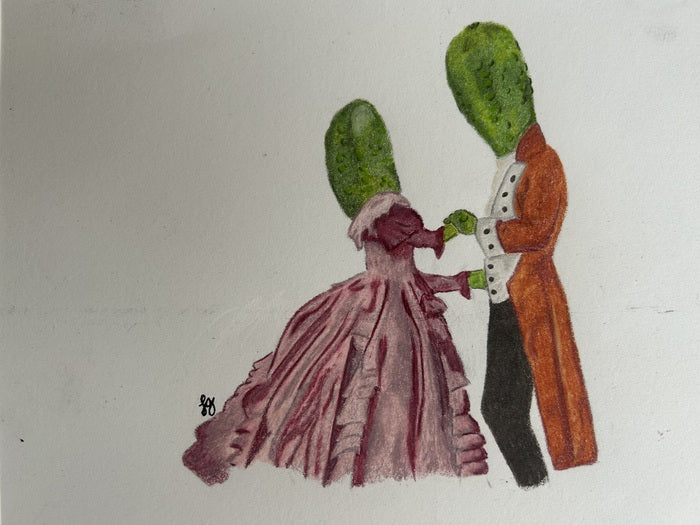 The Pickle Ball, Sasha Grunza, 2025, colored pencil, 7.5 x 9.5 in. / 19.05 x 24.13 cm.
