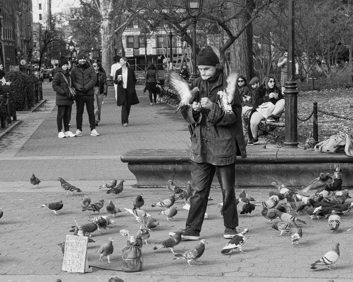 The Pigeon Man of Washington Square, John Krowka, 2024, digital photography, 16 x 20 in. / 40.64 x 50.8 cm.