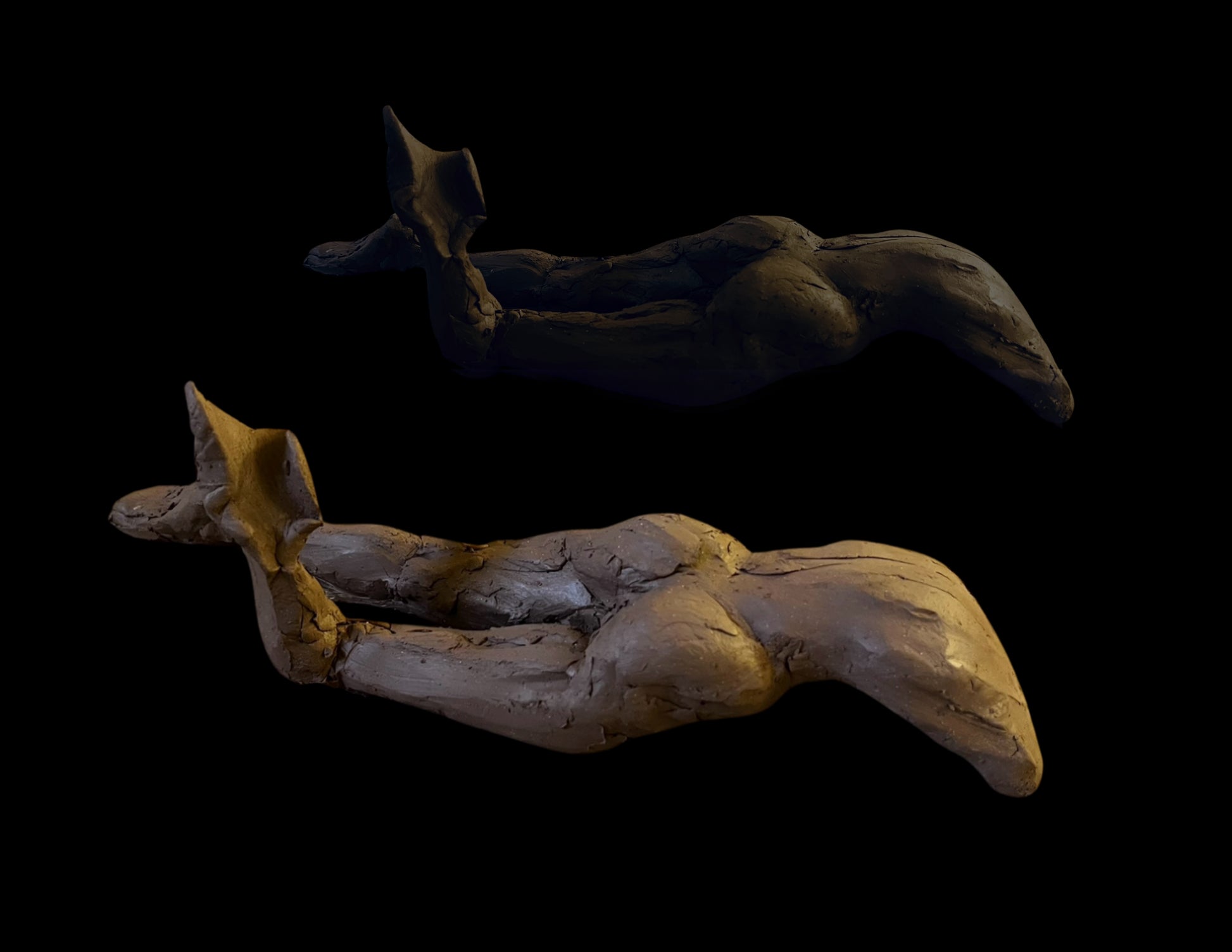 The Siren, Aleksandra Scepanovic, 2024, fired clay, 3.5 x 12 x 3.5 in. / 8.89 x 30.48 x 8.89 cm.