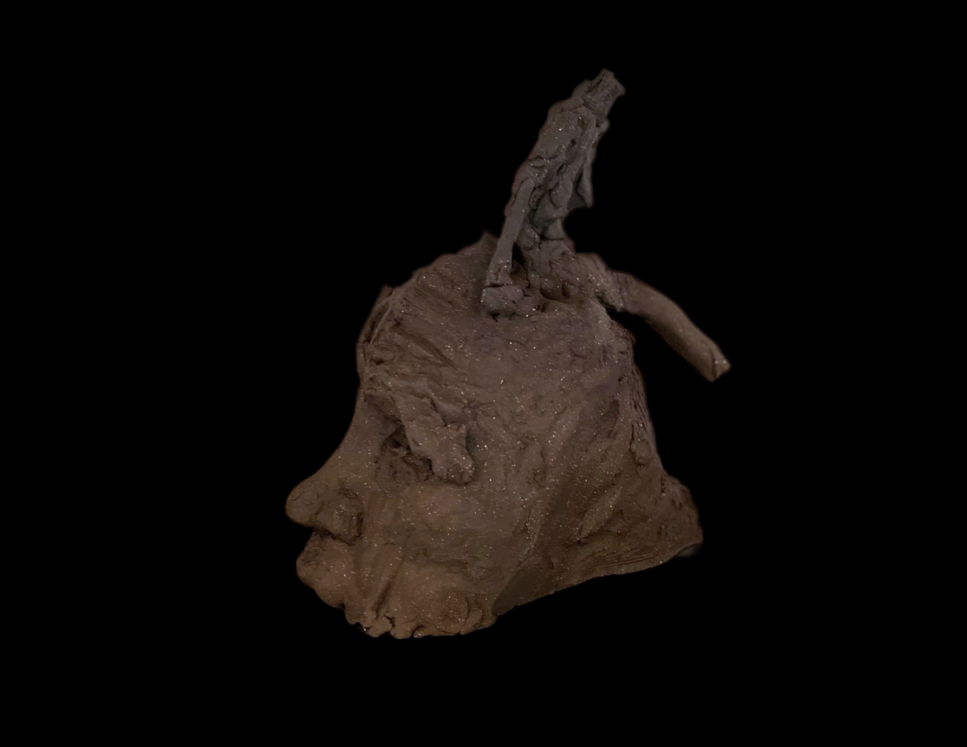The Sitter, 2024, fired clay, 10 x 5 x 8 in. / 25.4 x 12.7 x 20.32 cm.