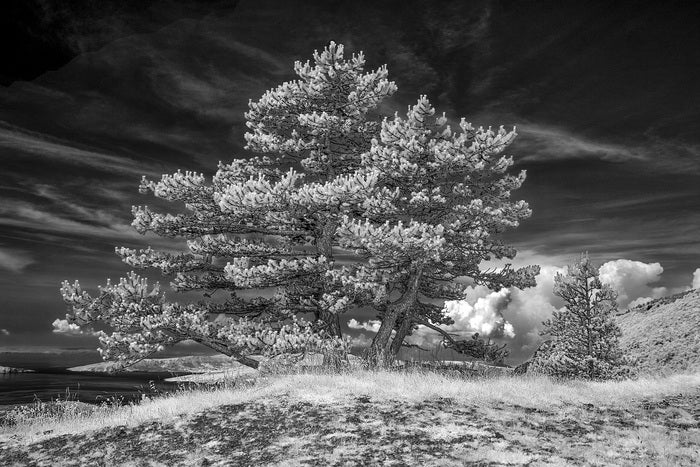 Infrared (IR) photograph of a wind blown tree taken at the top of the Vratnik pass that links interior Croatia to the Adriatic Sea at the city Senj.