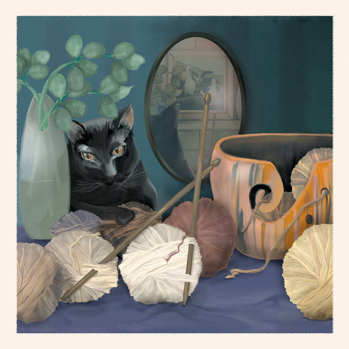 Tug'n at Strings, Carmen Magri, 2025, graphic watercolor, 12 x 12 in. / 30.48 x 30.48 cm.