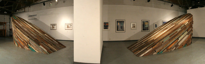 Underway (Overall View), Chris Nitsche, 2016, repurposed lumber & hardware, 8 x 42 x 8 ft. / 96 x 504 x 96 in.
