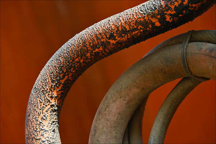 I’m fascinated by the rusted, burnt and aged surfaces at major construction sites.There is an unexpected radiance in what looks like a dystopian landscape.I’m awed by the beauty of machines we only associate with dirt and noise. This photo is a closeup of an articulated hauler’s hydraulic pipe