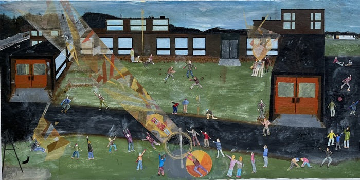 View of Five Miracles, New Hampshire, 1981, Cauley Greene, 2024, acrylic on plywood, 24 x 48 in. / 60.96 x 121.92 cm.