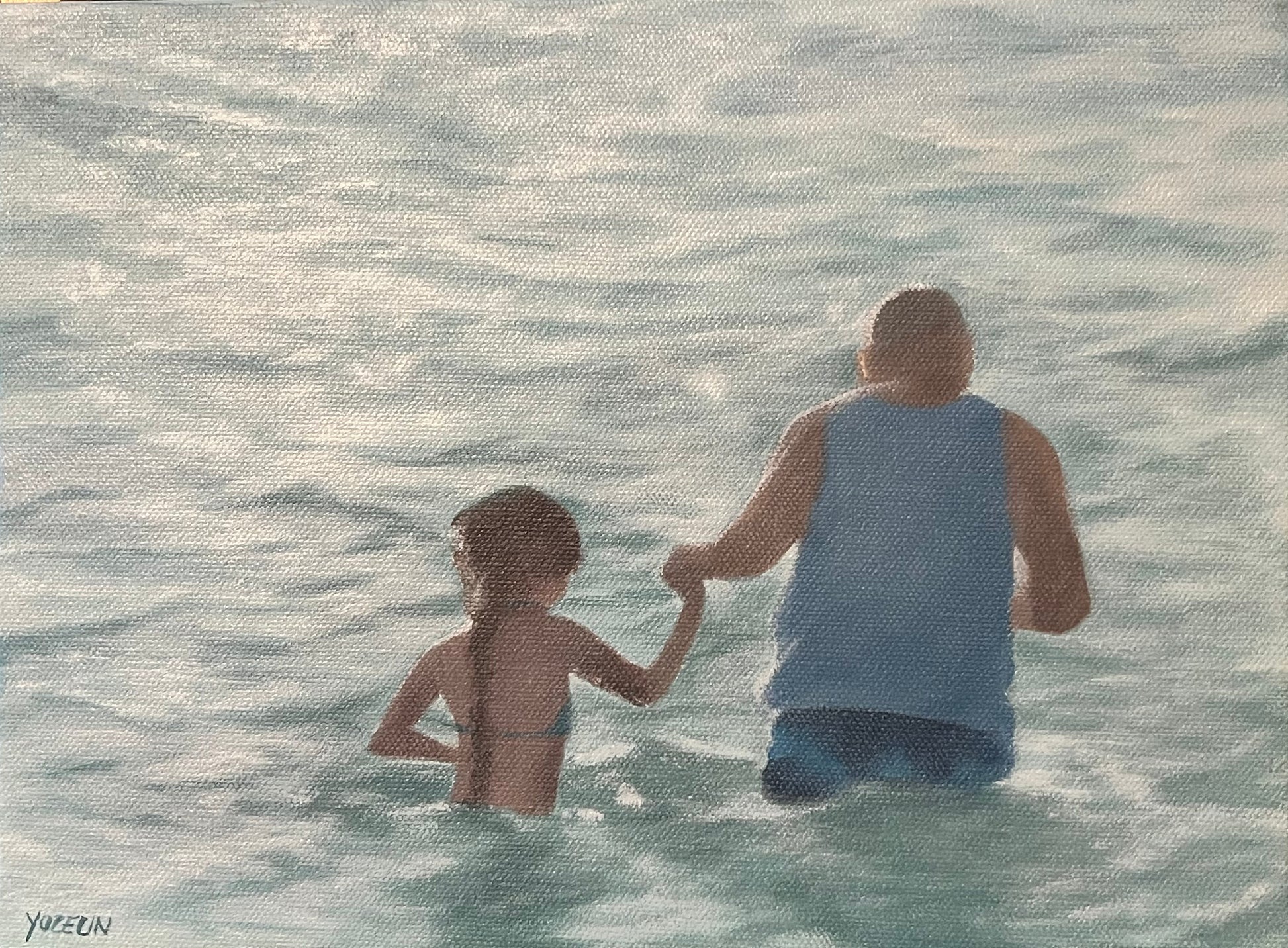 Wading, Yozelin Rivera, 2025, acrylic on canvas, 12 x 9 in. / 30.48 x 22.86 cm.