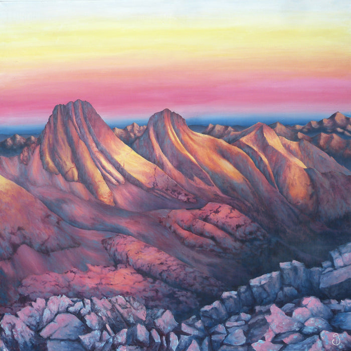 Weminuche Sunrise, Sara Brandenburg, 2021, acrylic, 60 x 60 in. / 152.4 x 152.4 cm.
