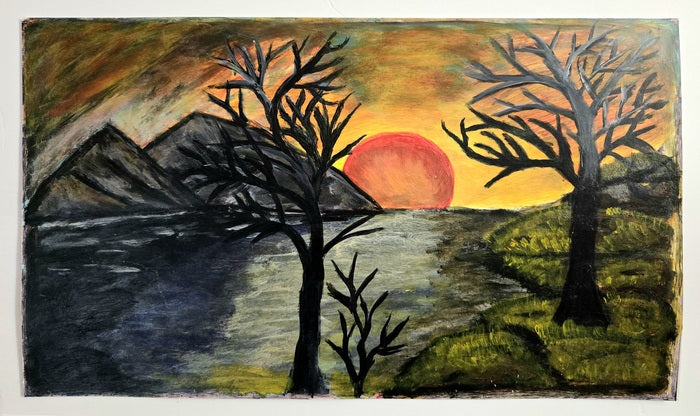 Whispers of Autumn Light, Mageswari Srinivasan, 2023, chart paper with water color, 12 x 21 in. / 30.48 x 53.34 cm.