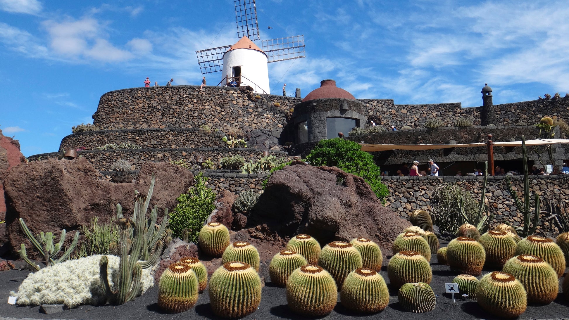 Windmills, Cactus, Tufa of Lanzarote, Karen Safer, 2023, giclee print on wrapped canvas, 24 x 13.5 in. / 60.96 x 34.30 cm.